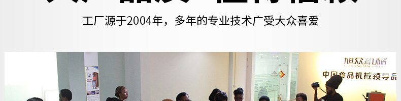 廣州旭眾食品機(jī)械有限公司是一家集科研開(kāi)發(fā),生產(chǎn)設(shè)計(jì),營(yíng)銷(xiāo)服務(wù)為一體的現(xiàn)代化生產(chǎn)企業(yè)?,F(xiàn)代化生產(chǎn)車(chē)間,精湛制造技術(shù),所產(chǎn)機(jī)械歷經(jīng)市場(chǎng)重重考驗(yàn),不斷贏得海內(nèi)外客戶(hù)的贊譽(yù)。