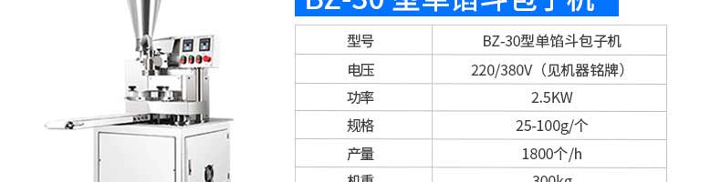 名稱290IIAS卷面式包子機(jī) 電源220/380V 功率2.5kw 產(chǎn)量0-3600個(gè)/h 尺寸3280×1500×1420mm 重量480KG 規(guī)格 其他