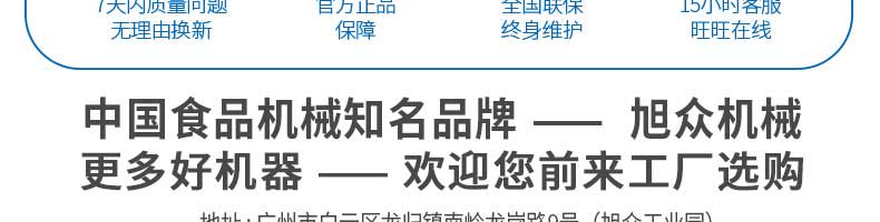 廣州旭眾食品機(jī)械有限公司是一家集科研開發(fā),生產(chǎn)設(shè)計(jì),營銷服務(wù)為一體的現(xiàn)代化生產(chǎn)企業(yè)?,F(xiàn)代化生產(chǎn)車間,精湛制造技術(shù),所產(chǎn)機(jī)械歷經(jīng)市場重重考驗(yàn),不斷贏得海內(nèi)外客戶的贊譽(yù)。