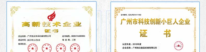 廣州旭眾食品機械有限公司是一家集科研開發(fā),生產(chǎn)設(shè)計,營銷服務(wù)為一體的現(xiàn)代化生產(chǎn)企業(yè)?,F(xiàn)代化生產(chǎn)車間,精湛制造技術(shù),所產(chǎn)機械歷經(jīng)市場重重考驗,不斷贏得海內(nèi)外客戶的贊譽。