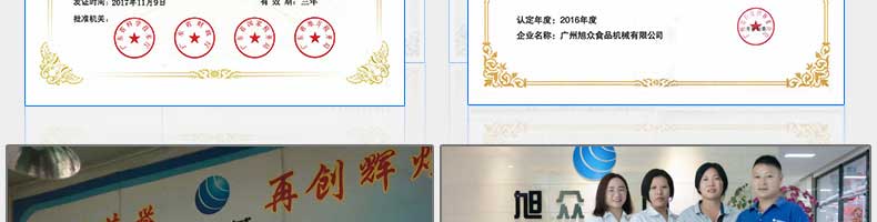 廣州旭眾食品機(jī)械有限公司是一家集科研開(kāi)發(fā),生產(chǎn)設(shè)計(jì),營(yíng)銷服務(wù)為一體的現(xiàn)代化生產(chǎn)企業(yè)?,F(xiàn)代化生產(chǎn)車間,精湛制造技術(shù),所產(chǎn)機(jī)械歷經(jīng)市場(chǎng)重重考驗(yàn),不斷贏得海內(nèi)外客戶的贊譽(yù)。
