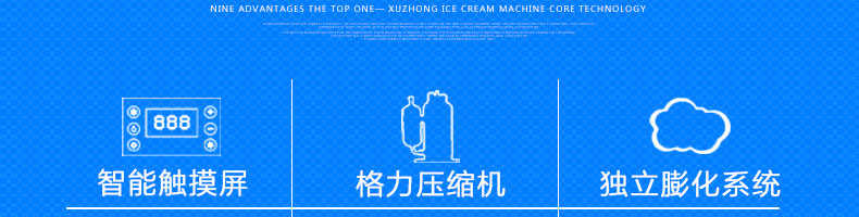 BQL-828立式冰淇淋機(jī),1.選用國際牌壓縮機(jī),輔以旭眾精湛工藝,大大縮短冰淇淋成型時(shí)間,高效節(jié)能;2.全新液晶智能觸控面板,簡單明了,多功能易操作;3.全新升級專業(yè)膨化泵,膨化率高,產(chǎn)量增加30%;4.一鍵清洗功能,省時(shí)方便;5.主要部件采用不銹鋼材質(zhì),時(shí)尚美觀,持久耐用;6.先進(jìn)的機(jī)械攪拌系統(tǒng),機(jī)器運(yùn)行穩(wěn)定可靠,低噪音,產(chǎn)品口感爽滑細(xì)嫩。