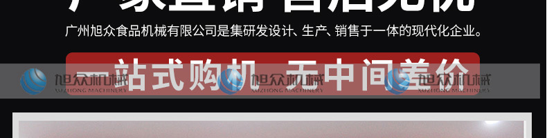 廣州旭眾食品機(jī)械有限公司是一家集科研開發(fā),生產(chǎn)設(shè)計(jì),營(yíng)銷服務(wù)為一體的現(xiàn)代化生產(chǎn)企業(yè)?,F(xiàn)代化生產(chǎn)車間,精湛制造技術(shù),所產(chǎn)機(jī)械歷經(jīng)市場(chǎng)重重考驗(yàn),不斷贏得海內(nèi)外客戶的贊譽(yù)。
