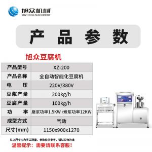 XZ-300型氣動(dòng)壓榨豆腐機(jī),智能豆腐豆?jié){機(jī),雙桶煮漿高效生產(chǎn)現(xiàn)磨現(xiàn)煮,漿渣分離快速出漿。機(jī)器運(yùn)行穩(wěn)定不銹鋼材質(zhì)打造,堅(jiān)固耐用,安全衛(wèi)生,時(shí)尚大方,易于清洗。