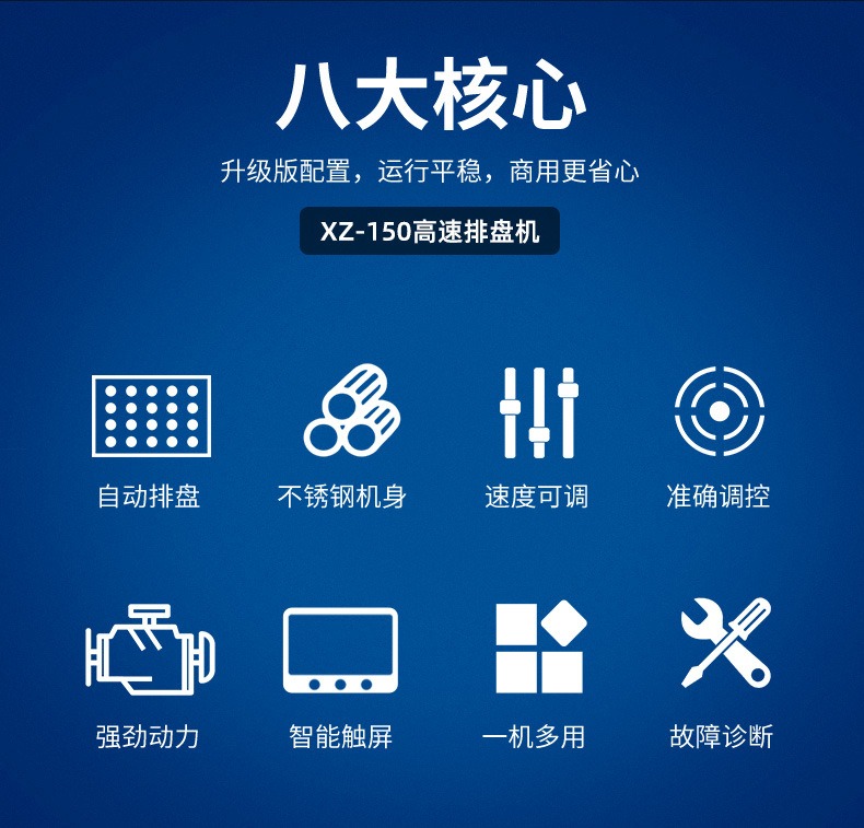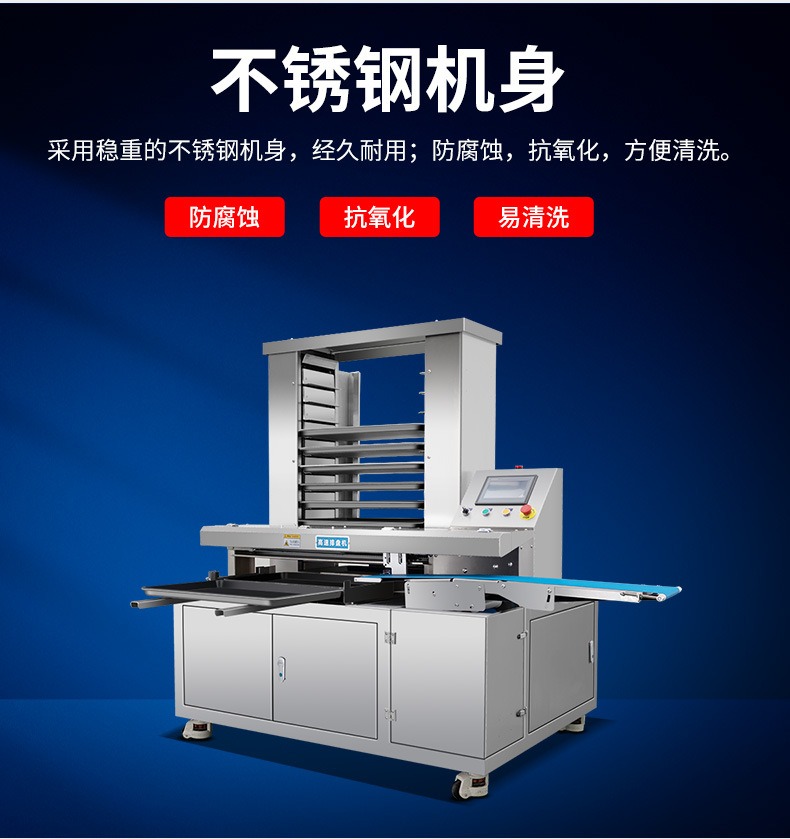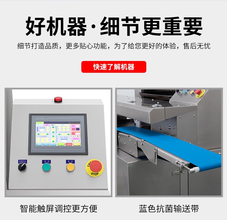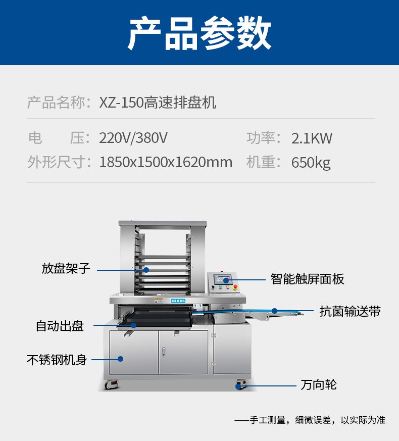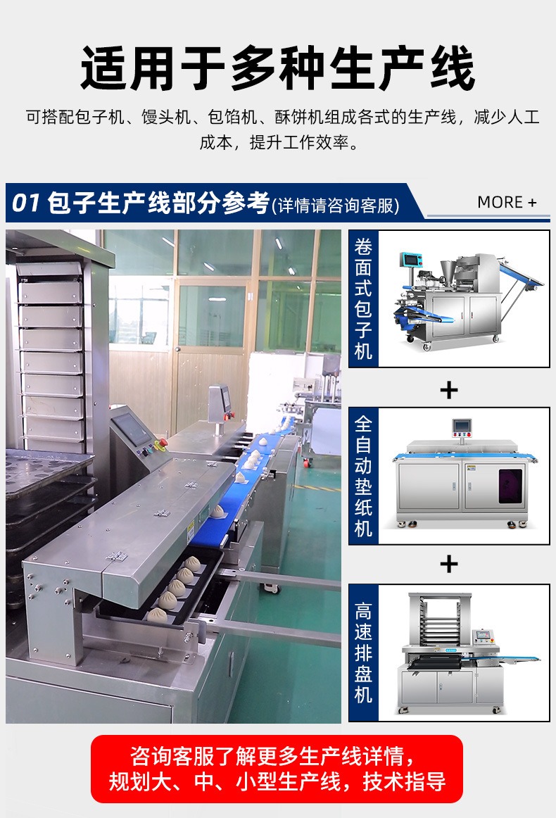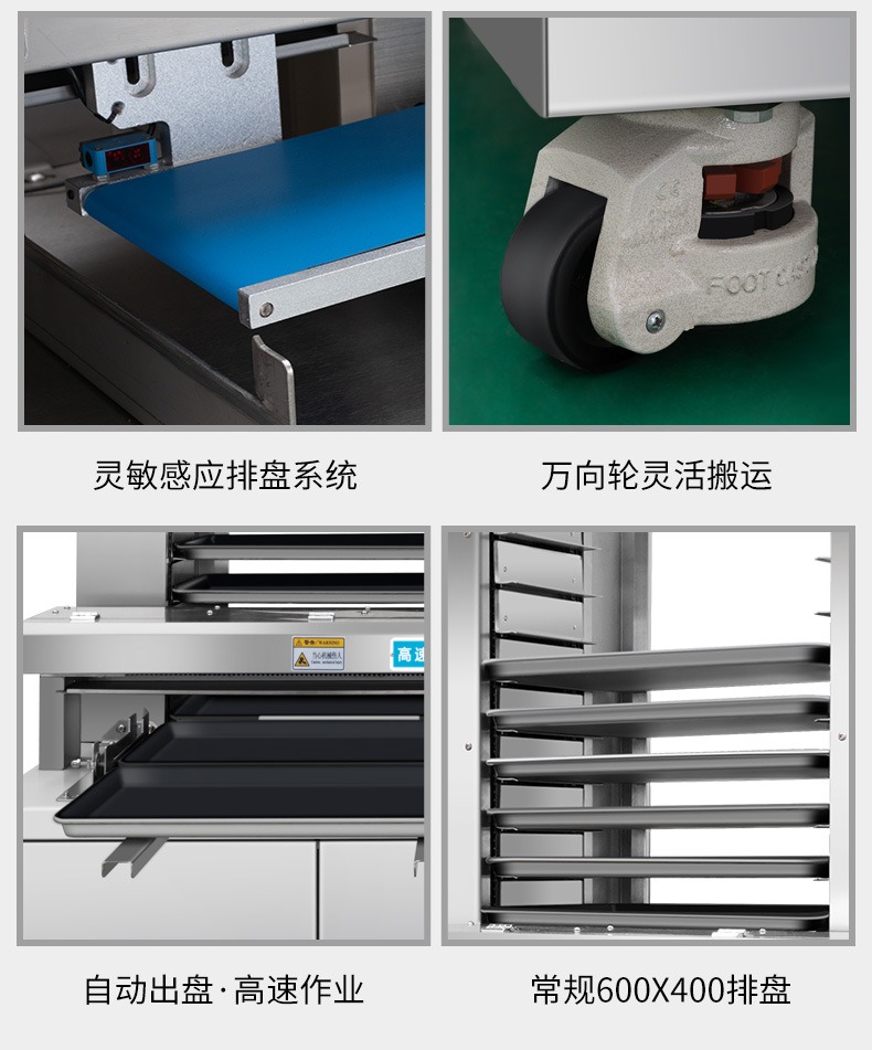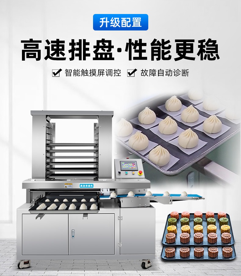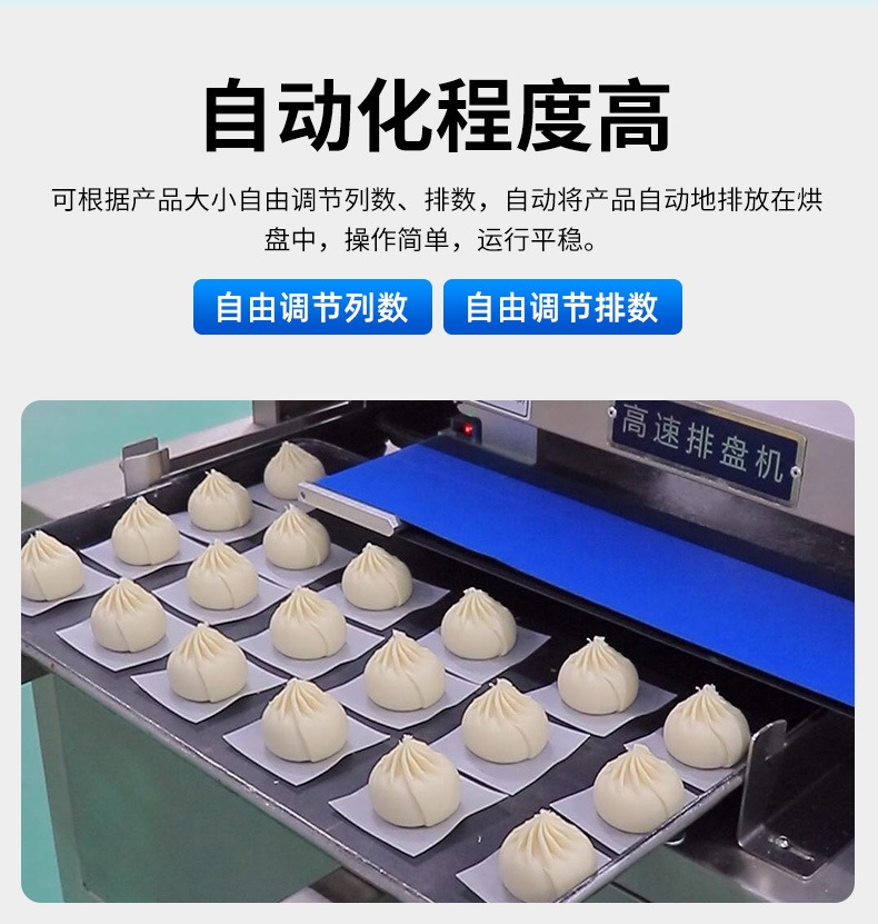 多功能商用高速排盤(pán)機(jī),自動(dòng)化程度高,可根據(jù)產(chǎn)品大小自由調(diào)節(jié)列數(shù)、排數(shù),自動(dòng)將產(chǎn)品自動(dòng)地排放在烘盤(pán)中,操作簡(jiǎn)單,運(yùn)行平穩(wěn)。智能觸屏面板??刂葡到y(tǒng)由三菱PLC和進(jìn)口觸摸屏組成,操作簡(jiǎn)單方便。具有故障自動(dòng)診斷,一目了然。