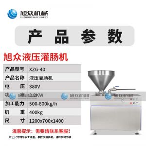 名稱XZG-40液壓灌腸機(jī) 電源380V 功率2.2KW 產(chǎn)量500800kg/h 尺寸1200X700X1400m 重量400kg 規(guī)格聯(lián)系銷售員 其他