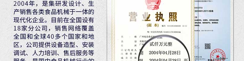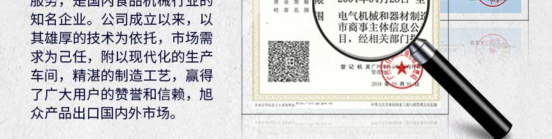 廣州旭眾食品機(jī)械有限公司是一家集科研開發(fā),生產(chǎn)設(shè)計(jì),營(yíng)銷服務(wù)為一體的現(xiàn)代化生產(chǎn)企業(yè)。現(xiàn)代化生產(chǎn)車間,精湛制造技術(shù),所產(chǎn)機(jī)械歷經(jīng)市場(chǎng)重重考驗(yàn),不斷贏得海內(nèi)外客戶的贊譽(yù)。