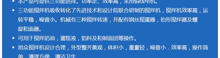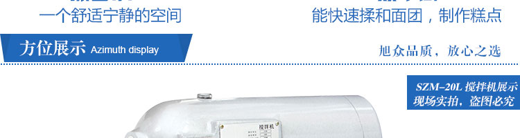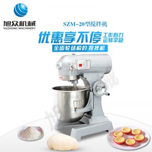 SZM-20型四功能攪拌機,可用于攪拌奶油、蛋糕液、餡料及和制面團等操作。打蛋攪拌機等作攪拌食料、揉和面團之用,是生產(chǎn)優(yōu)質(zhì)糕點的理想設(shè)備,適用于酒店、飯店、學(xué)校部門、面包屋以及食品廠家。