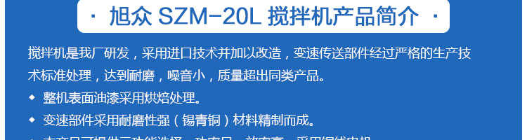 名稱SZM-20型四功能攪拌機 電源220V 功率1.1kw 產(chǎn)量 尺寸外形尺寸550*420*780mm 重量98kg 規(guī)格 其他