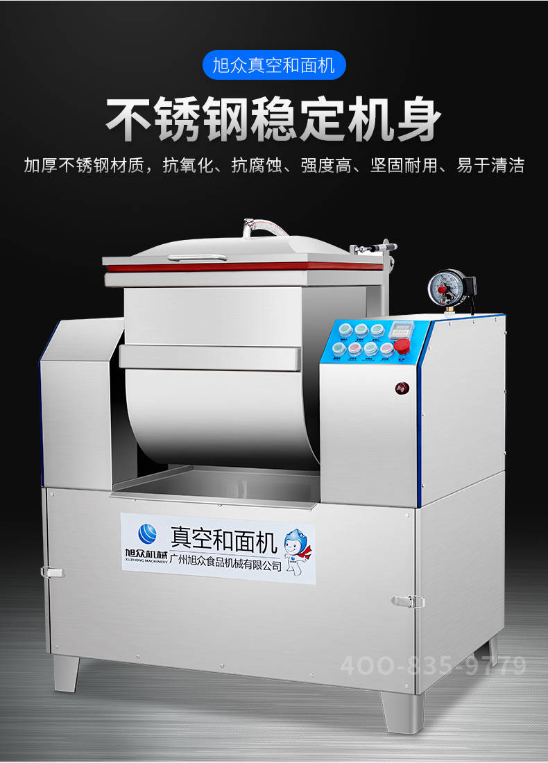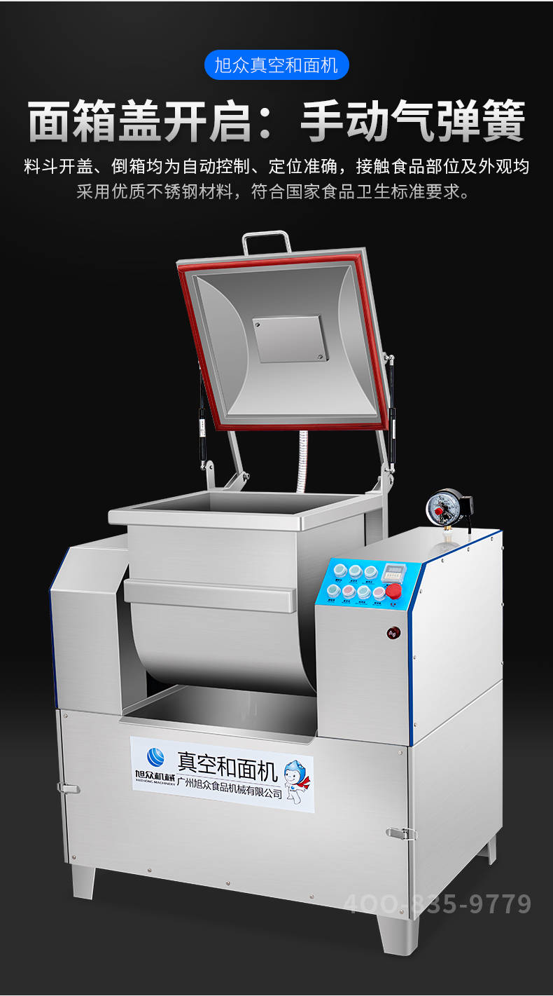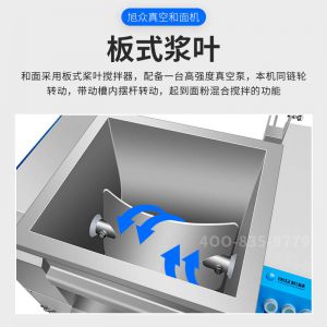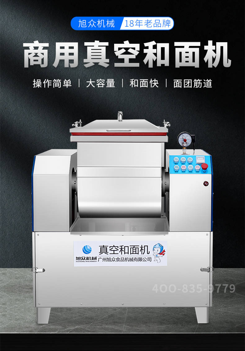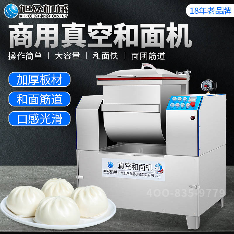 XZZK-25真空和面機(jī),商用真空和面機(jī),操作簡(jiǎn)單、大容量、和面快、面團(tuán)筋道。在真空狀態(tài)下模擬手工和面的原理,和面過(guò)程在真空負(fù)壓下拌和,使面粉中的蛋白質(zhì)在短時(shí)間內(nèi)、充分的吸收水分,使面筋網(wǎng)絡(luò)快速形成。