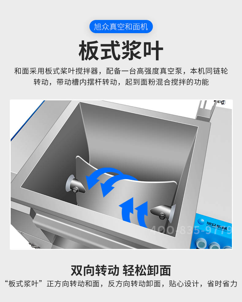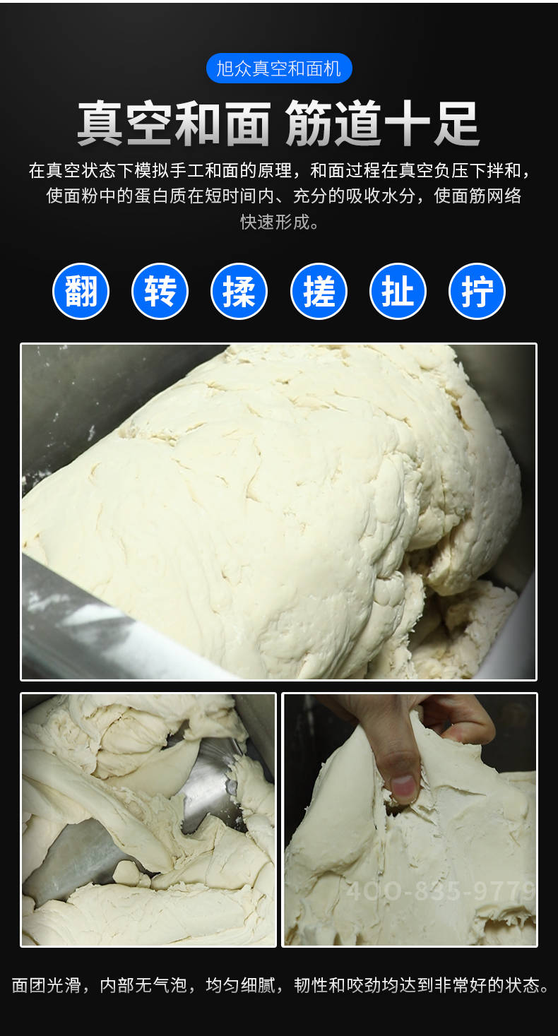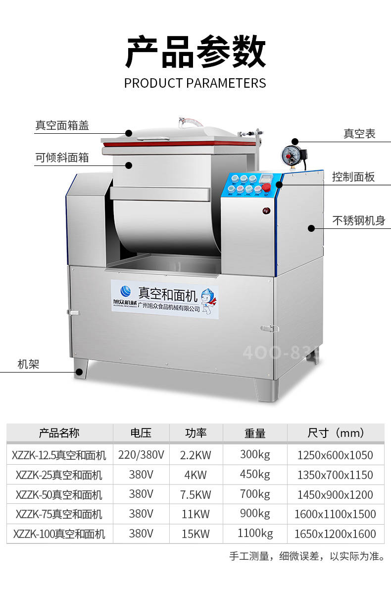 XZZK-25真空和面機(jī),商用真空和面機(jī),操作簡(jiǎn)單、大容量、和面快、面團(tuán)筋道。在真空狀態(tài)下模擬手工和面的原理,和面過(guò)程在真空負(fù)壓下拌和,使面粉中的蛋白質(zhì)在短時(shí)間內(nèi)、充分的吸收水分,使面筋網(wǎng)絡(luò)快速形成。