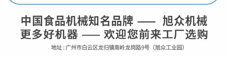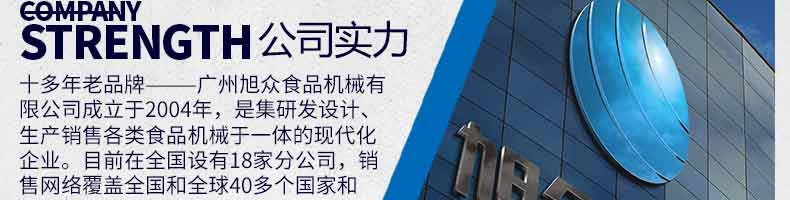 廣州旭眾食品機(jī)械有限公司是一家集科研開(kāi)發(fā),生產(chǎn)設(shè)計(jì),營(yíng)銷服務(wù)為一體的現(xiàn)代化生產(chǎn)企業(yè)?,F(xiàn)代化生產(chǎn)車(chē)間,精湛制造技術(shù),所產(chǎn)機(jī)械歷經(jīng)市場(chǎng)重重考驗(yàn),不斷贏得海內(nèi)外客戶的贊譽(yù)。