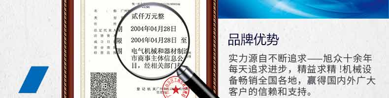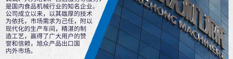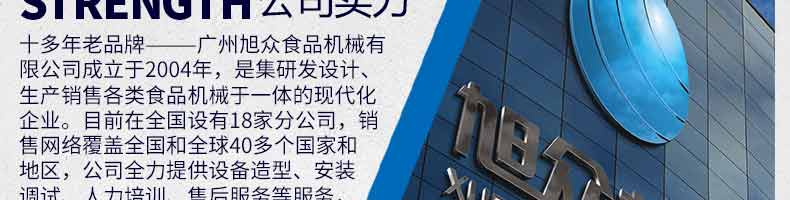 廣州旭眾食品機(jī)械有限公司是一家集科研開(kāi)發(fā),生產(chǎn)設(shè)計(jì),營(yíng)銷服務(wù)為一體的現(xiàn)代化生產(chǎn)企業(yè)?,F(xiàn)代化生產(chǎn)車間,精湛制造技術(shù),所產(chǎn)機(jī)械歷經(jīng)市場(chǎng)重重考驗(yàn),不斷贏得海內(nèi)外客戶的贊譽(yù)。