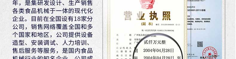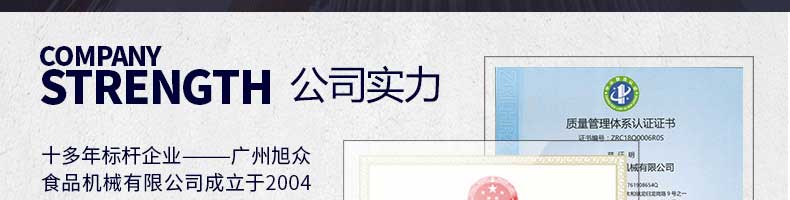 廣州旭眾食品機(jī)械有限公司是一家集科研開(kāi)發(fā),生產(chǎn)設(shè)計(jì),營(yíng)銷服務(wù)為一體的現(xiàn)代化生產(chǎn)企業(yè)?,F(xiàn)代化生產(chǎn)車間,精湛制造技術(shù),所產(chǎn)機(jī)械歷經(jīng)市場(chǎng)重重考驗(yàn),不斷贏得海內(nèi)外客戶的贊譽(yù)。