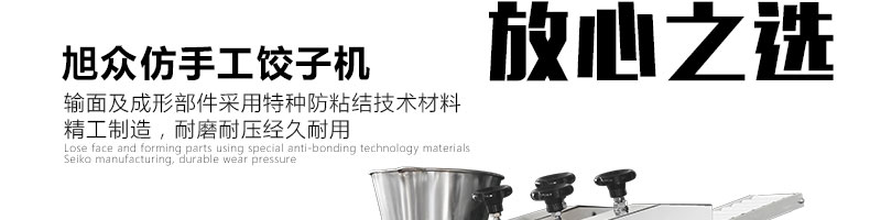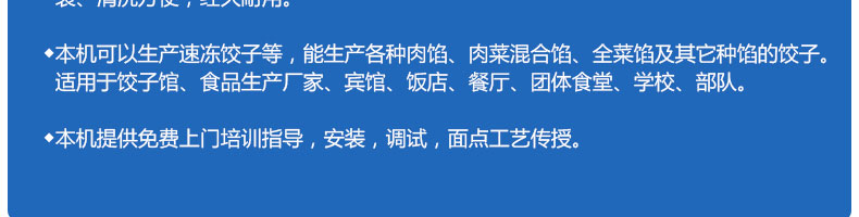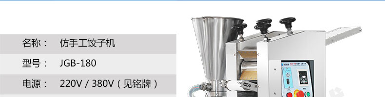 JGB-180餃子機,先進的自動餃子生產(chǎn)設(shè)備,包括主動壓皮部分、自動供餡部分、自動包合部分、自動成品輸送部分,并且只要更換模具,就可制鍋貼等食品。適合食品速凍廠、飯店、廠礦學校食堂等制作包餡面制品單位使用。
