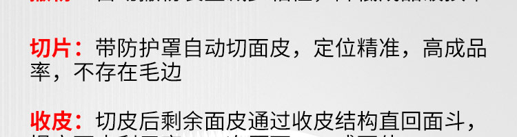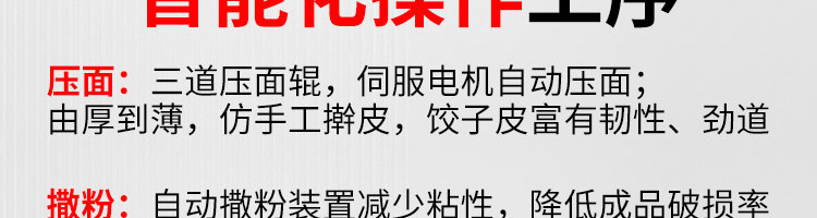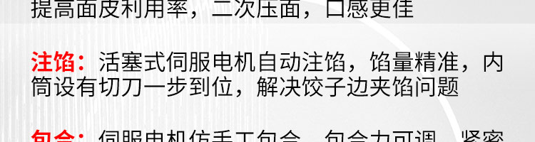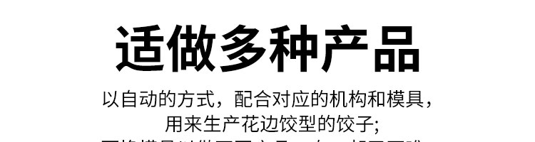 JGB-10型一體式餃子機,制皮成型一體餃子機,科技化生產(chǎn)/人性化設計。餃型可蒸、可炸、可煮,可適應不同場合的客戶需求。功能、智能一體,以自動化科技與過硬質量貼心服務。