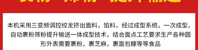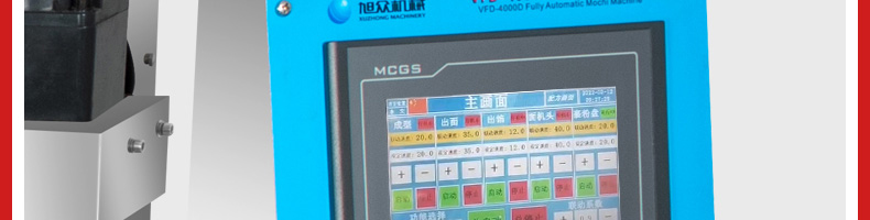 VFD-4000D麻薯機(jī),操作簡(jiǎn)單定量準(zhǔn)確只要將面團(tuán)與餡料放入進(jìn)料口,開(kāi)機(jī)便可包餡、成型,裹粉,篩粉,提升輸送等生產(chǎn)工藝流程。送面、送餡均采用雙絞籠結(jié)構(gòu),數(shù)字變頻調(diào)控,可任意調(diào)節(jié)面、餡輸送量及產(chǎn)品重量。