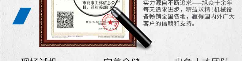 廣州旭眾食品機械有限公司是一家集科研開發(fā),生產(chǎn)設(shè)計,營銷服務(wù)為一體的現(xiàn)代化生產(chǎn)企業(yè)?,F(xiàn)代化生產(chǎn)車間,精湛制造技術(shù),所產(chǎn)機械歷經(jīng)市場重重考驗,不斷贏得海內(nèi)外客戶的贊譽。