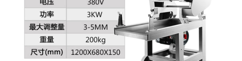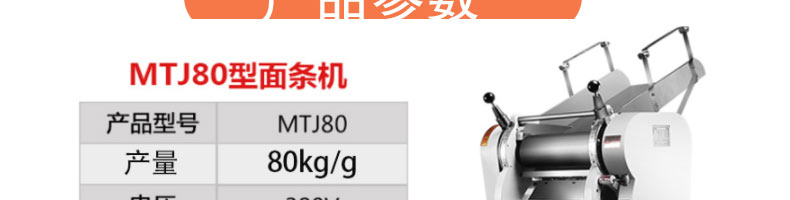 名稱80型全自動壓面面條機(jī) 電源380v 功率3kw 產(chǎn)量80kg/g 尺寸1200*680*150mm 重量200kg 規(guī)格 其他