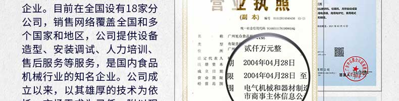 廣州旭眾食品機械有限公司是一家集科研開發(fā),生產(chǎn)設計,營銷服務為一體的現(xiàn)代化生產(chǎn)企業(yè)。現(xiàn)代化生產(chǎn)車間,精湛制造技術(shù),所產(chǎn)機械歷經(jīng)市場重重考驗,不斷贏得海內(nèi)外客戶的贊譽。
