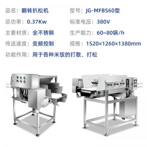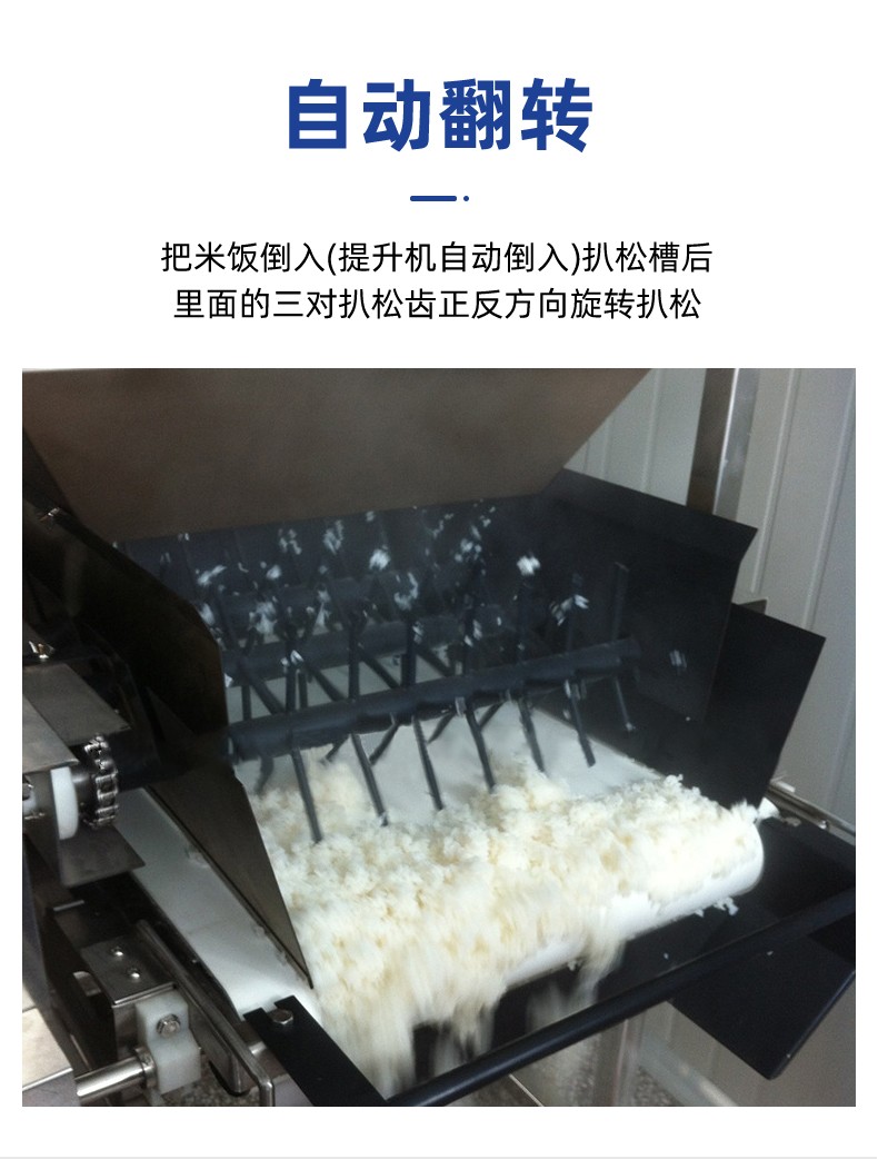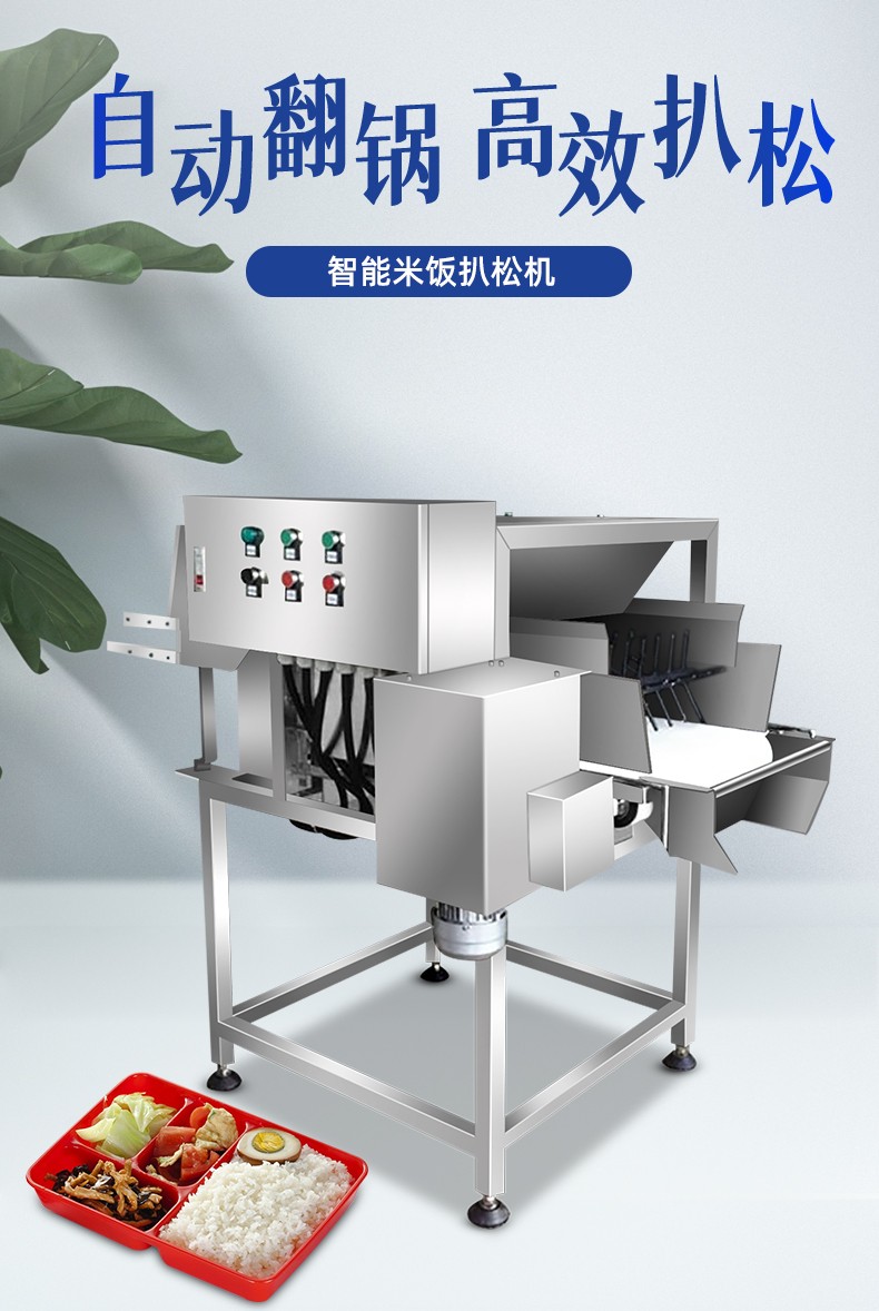 智能米飯扒松機(jī)-翻轉(zhuǎn)扒松機(jī),主要結(jié)構(gòu):由不銹鋼機(jī)架、翻鍋機(jī)構(gòu)、扒松機(jī)構(gòu)輸送機(jī)構(gòu)和電氣自動(dòng)系統(tǒng)等組成。適用對象:主要用于中央廚房、團(tuán)膳、企事業(yè)單位食堂等