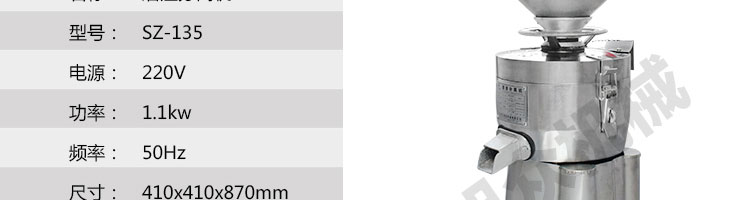 名稱sz-135磨渣分離機 電源220v 功率1.1kw 產(chǎn)量80kg/h 尺寸410*410*870mm 重量 規(guī)格 其他