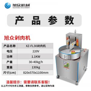 名稱XZ-FL30剁肉機(jī) 電源220V 功率1.1KW 產(chǎn)量3040kg/h 尺寸820X570X1100mm 重量130kg 規(guī)格請(qǐng)咨詢銷(xiāo)售員 其他