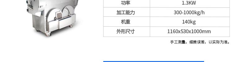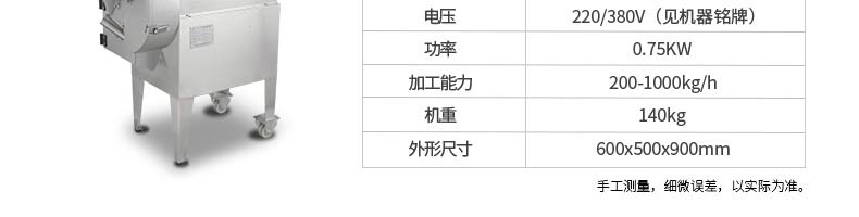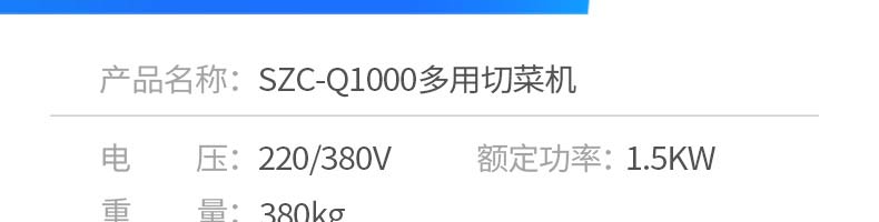 名稱SZC-Q1000多用切菜機 電源220/380v 功率1.5kw 產(chǎn)量 尺寸1300*510*1050mm 重量380kg 規(guī)格 其他