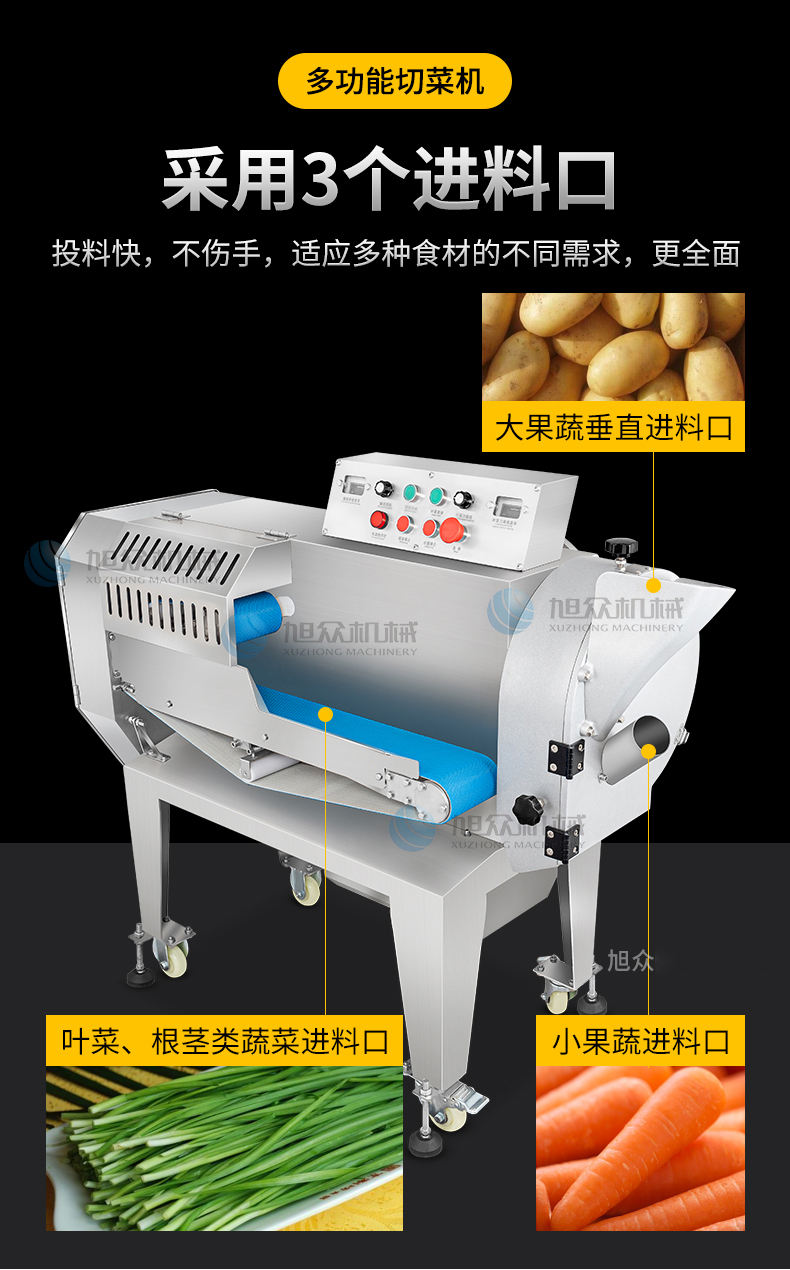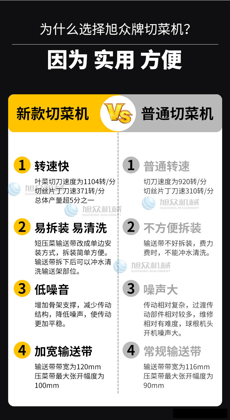 XZ-688A切菜機(jī),占地使用面積小機(jī)器小,省空間,適合飯店、食堂、酒店等使用。省事省力省人工1小時(shí)加工2000斤葉菜切刀速度為1104轉(zhuǎn)/分,切絲、切片、切丁、刀速371轉(zhuǎn)/分。