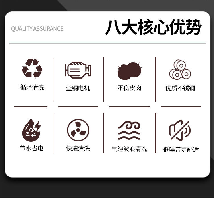 全自動果蔬氣泡清洗機(jī),堅固耐用,整機(jī)采用質(zhì)不誘鋼。由防銹外層、鋼層底、強硬鋼外層組成,耐用不易生銹。澎湃大動力源于好,搭載變頻電機(jī),強勁動力穩(wěn)定輸出噪音低,好的動力源于好“芯”