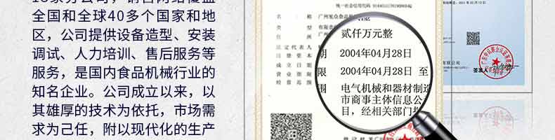 廣州旭眾食品機(jī)械有限公司是一家集科研開發(fā),生產(chǎn)設(shè)計(jì),營(yíng)銷服務(wù)為一體的現(xiàn)代化生產(chǎn)企業(yè)?,F(xiàn)代化生產(chǎn)車間,精湛制造技術(shù),所產(chǎn)機(jī)械歷經(jīng)市場(chǎng)重重考驗(yàn),不斷贏得海內(nèi)外客戶的贊譽(yù)。