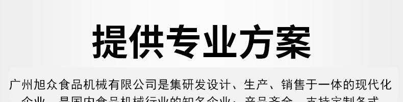 廣州旭眾食品機(jī)械有限公司是一家集科研開發(fā),生產(chǎn)設(shè)計(jì),營(yíng)銷服務(wù)為一體的現(xiàn)代化生產(chǎn)企業(yè)。現(xiàn)代化生產(chǎn)車間,精湛制造技術(shù),所產(chǎn)機(jī)械歷經(jīng)市場(chǎng)重重考驗(yàn),不斷贏得海內(nèi)外客戶的贊譽(yù)。