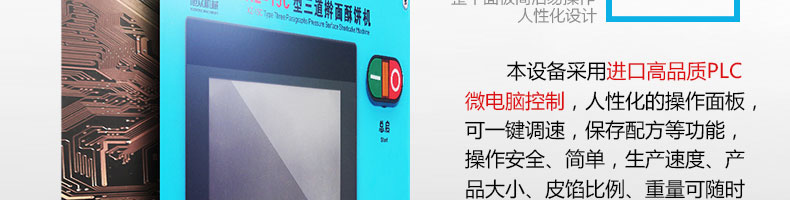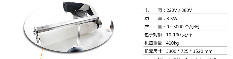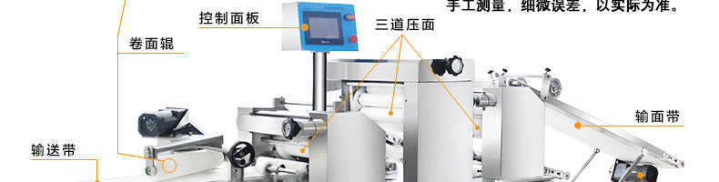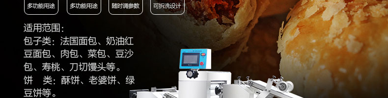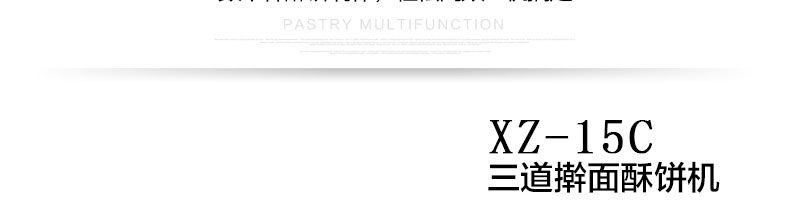名稱xz-15c三道搟面酥餅機(jī) 電源220/380V(見機(jī)器名牌) 功率3kw 產(chǎn)量0-5000個/小時 尺寸主機(jī)尺寸3300*725*1520mm,成型機(jī)尺寸1550*800*820mm,出餡機(jī)尺寸870*4 重量410+110+170kg 規(guī)格10-150克/個 其他