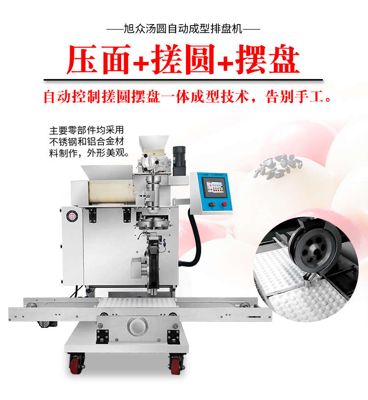 VFD-4000B湯圓機,定量準確自動搓圓排盤成型大小均勻口感柔滑。可制作各式包餡食品,如湯圓、芝麻球、豆沙包、南瓜餅、奶黃包等