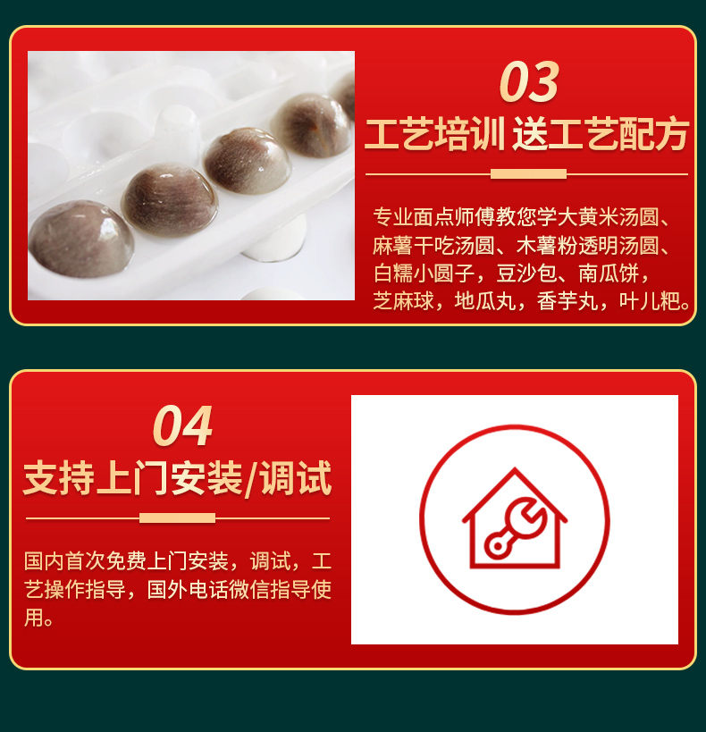 4000C湯圓機(jī),多功能湯圓機(jī),運(yùn)行穩(wěn)定、時(shí)產(chǎn)量高、大小可調(diào)。制品多樣性生產(chǎn)各種大小規(guī)格不同的有餡湯圓,無餡湯圓、豆沙包、南瓜餅,芝麻球,地瓜丸,香芋丸,葉兒粑,青團(tuán),粘豆包等。