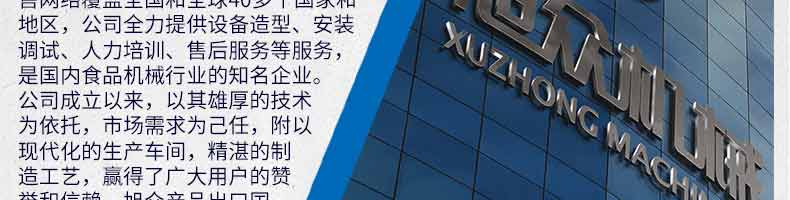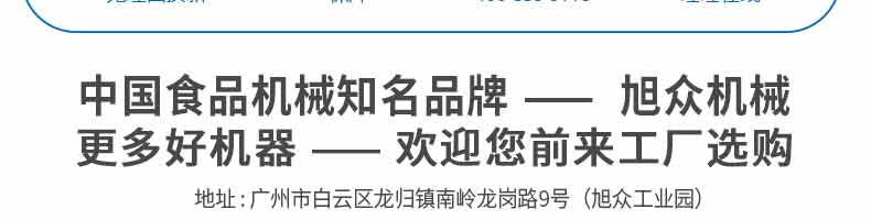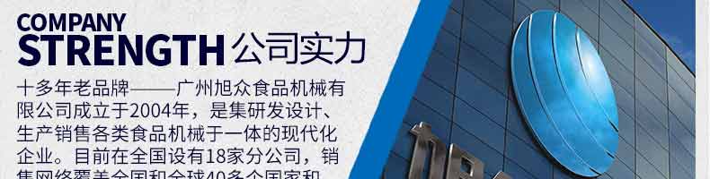 廣州旭眾食品機(jī)械有限公司是一家集科研開發(fā),生產(chǎn)設(shè)計,營銷服務(wù)為一體的現(xiàn)代化生產(chǎn)企業(yè)。現(xiàn)代化生產(chǎn)車間,精湛制造技術(shù),所產(chǎn)機(jī)械歷經(jīng)市場重重考驗,不斷贏得海內(nèi)外客戶的贊譽(yù)。