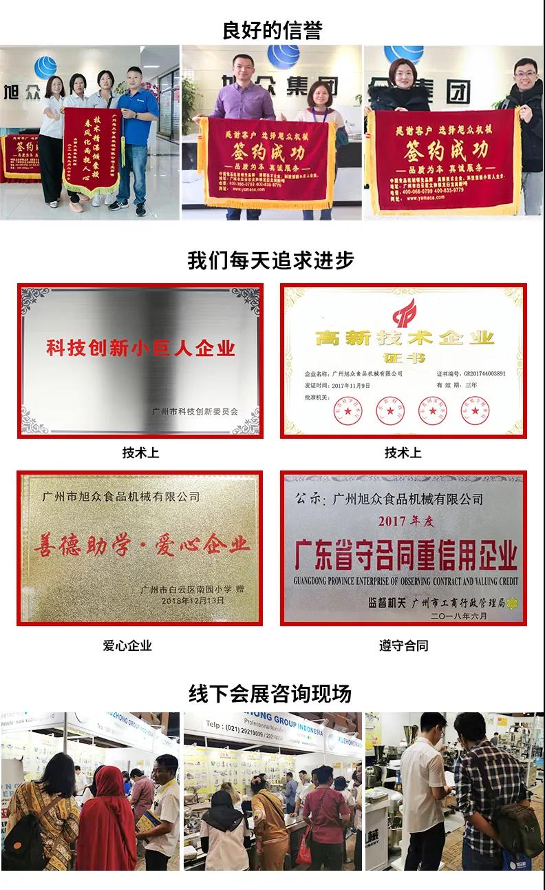 廣州旭眾食品機(jī)械有限公司是一家集科研開發(fā),生產(chǎn)設(shè)計,營銷服務(wù)為一體的現(xiàn)代化生產(chǎn)企業(yè)?,F(xiàn)代化生產(chǎn)車間,精湛制造技術(shù),所產(chǎn)機(jī)械歷經(jīng)市場重重考驗,不斷贏得海內(nèi)外客戶的贊譽。