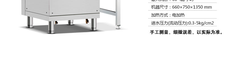 名稱XZ-60洗碗機(jī)-揭蓋式洗碗機(jī) 電源380V 功率11kw 產(chǎn)量 尺寸主機(jī)規(guī)格700*800*1500mm 重量 規(guī)格 其他最大洗滌高度400mm,洗滌量1000pcs/h,板材:全部304板材,1.2mm厚,標(biāo)配3個(gè)籃子