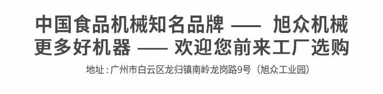 廣州旭眾食品機(jī)械有限公司是一家集科研開發(fā),生產(chǎn)設(shè)計(jì),營(yíng)銷服務(wù)為一體的現(xiàn)代化生產(chǎn)企業(yè)。現(xiàn)代化生產(chǎn)車間,精湛制造技術(shù),所產(chǎn)機(jī)械歷經(jīng)市場(chǎng)重重考驗(yàn),不斷贏得海內(nèi)外客戶的贊譽(yù)。