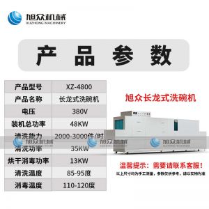 XZ-4800長龍式洗碗機(jī),碗如新生,旭眾長龍式洗碗機(jī)。環(huán)繞噴淋技術(shù)繞體循環(huán)用水/油污分離快速潔凈。食品級304不銹鋼堅(jiān)固耐用,耐高溫抗腐蝕,易于清洗,安全有保障。
