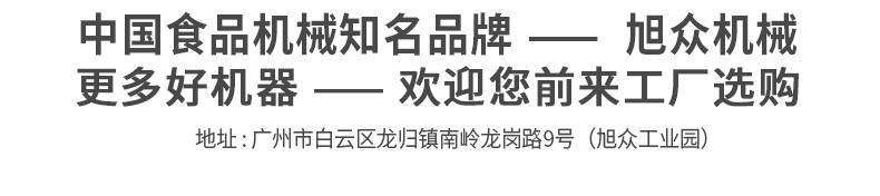 廣州旭眾食品機(jī)械有限公司是一家集科研開發(fā),生產(chǎn)設(shè)計(jì),營銷服務(wù)為一體的現(xiàn)代化生產(chǎn)企業(yè)。現(xiàn)代化生產(chǎn)車間,精湛制造技術(shù),所產(chǎn)機(jī)械歷經(jīng)市場重重考驗(yàn),不斷贏得海內(nèi)外客戶的贊譽(yù)。
