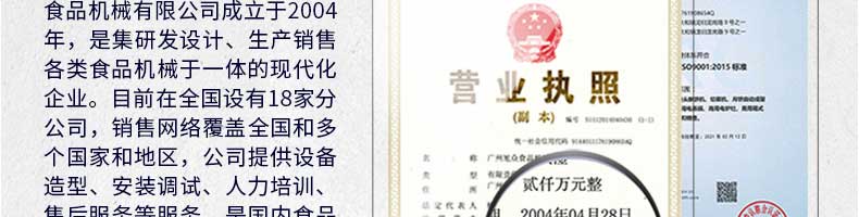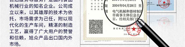 廣州旭眾食品機(jī)械有限公司是一家集科研開發(fā),生產(chǎn)設(shè)計,營銷服務(wù)為一體的現(xiàn)代化生產(chǎn)企業(yè)。現(xiàn)代化生產(chǎn)車間,精湛制造技術(shù),所產(chǎn)機(jī)械歷經(jīng)市場重重考驗,不斷贏得海內(nèi)外客戶的贊譽(yù)。