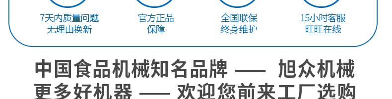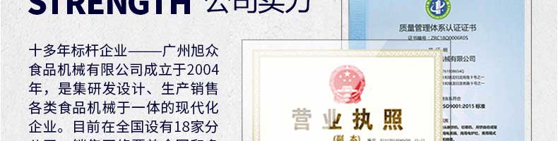 廣州旭眾食品機械有限公司是一家集科研開發(fā),生產設計,營銷服務為一體的現代化生產企業(yè)。現代化生產車間,精湛制造技術,所產機械歷經市場重重考驗,不斷贏得海內外客戶的贊譽。