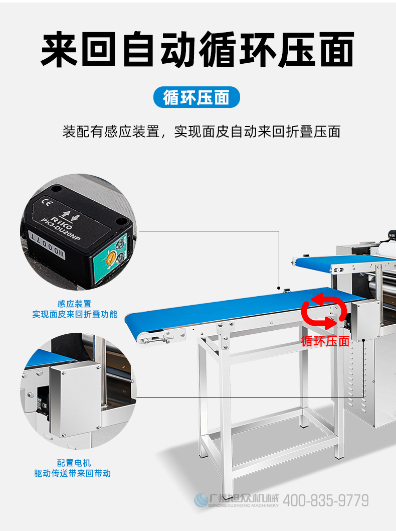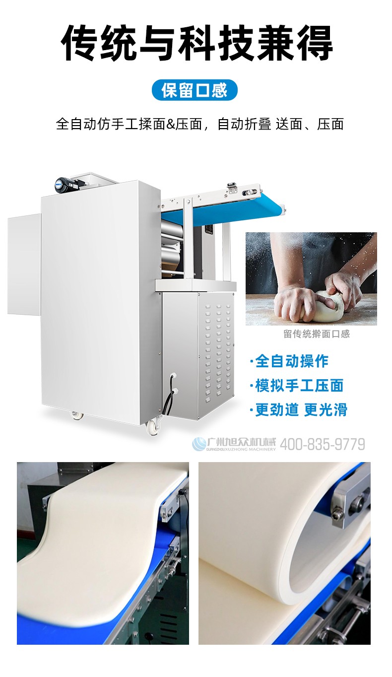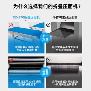 XZ-ZDYMJ370型自動折疊壓面機,整機不銹鋼機身打造,真材實料,選用不銹鋼材質,打造經(jīng)久耐用、防腐蝕。匠心細節(jié),彰顯品質貼心設計。一鍵設定壓面次數(shù),智能定時,只需設定好壓面次數(shù),就能全自動壓面出面。