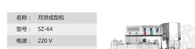 SZ-64月餅自動(dòng)成型機(jī),可同于制作各種月餅,適合印制各種月餅。適用于蛋糕房、休閑食品廠、食品加工產(chǎn)、面包房、月餅加工廠、超市、學(xué)校、食堂等各種工作場所。可滿足不同客戶群體。免費(fèi)提供工藝技術(shù)。