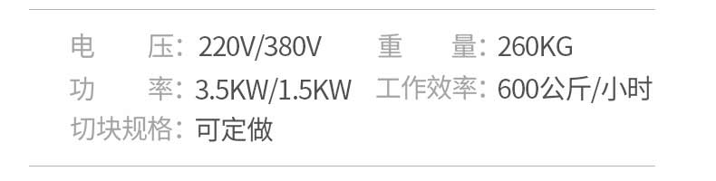 名稱禽類剁塊機(jī) 電源220v/380v 功率3.5kw/1.5kw 產(chǎn)量600公斤/小時(shí) 尺寸1300*700*850mm 重量260kg 規(guī)格可定做 其他