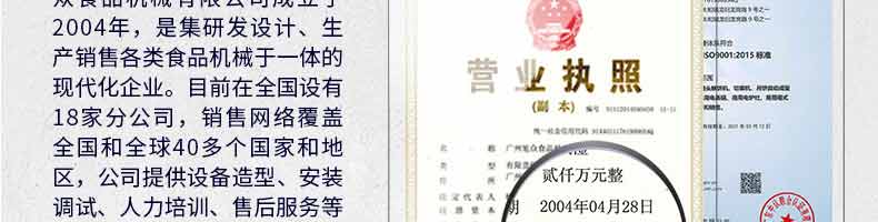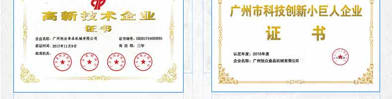 廣州旭眾食品機械有限公司是一家集科研開發(fā),生產(chǎn)設計,營銷服務為一體的現(xiàn)代化生產(chǎn)企業(yè)?,F(xiàn)代化生產(chǎn)車間,精湛制造技術,所產(chǎn)機械歷經(jīng)市場重重考驗,不斷贏得海內(nèi)外客戶的贊譽。
