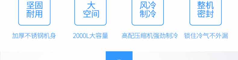 XZ-速凍柜,實(shí)力派,不妥協(xié)。4大強(qiáng)勢來襲,源自生活所需。堅(jiān)固耐用、大空間、風(fēng)冷制冷、整機(jī)密封、加厚不銹鋼機(jī)身,2000L大容量,高配壓縮機(jī)強(qiáng)勁制,令鎖住冷氣不外漏。