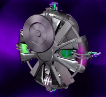 環(huán)缸式圓形轉(zhuǎn)子發(fā)動機的氣缸為中空圓輪環(huán)形,異形連桿斷面呈“S”形,氣缸通過左右氣缸座、軸承與中央軸連接呈游離狀態(tài),異形連桿也通過一對軸承與左右汽缸座固定呈游離狀態(tài),右氣缸座上固定有中空傳動輪,輪內(nèi)設(shè)置有行星齒輪與凸輪機構(gòu)